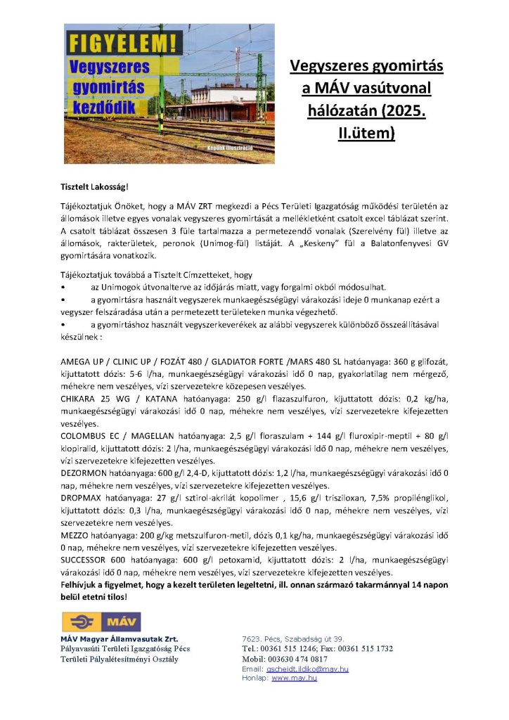 Vegyszeres gyomirtás a MÁV vasútvonal hálózatán II. ütem